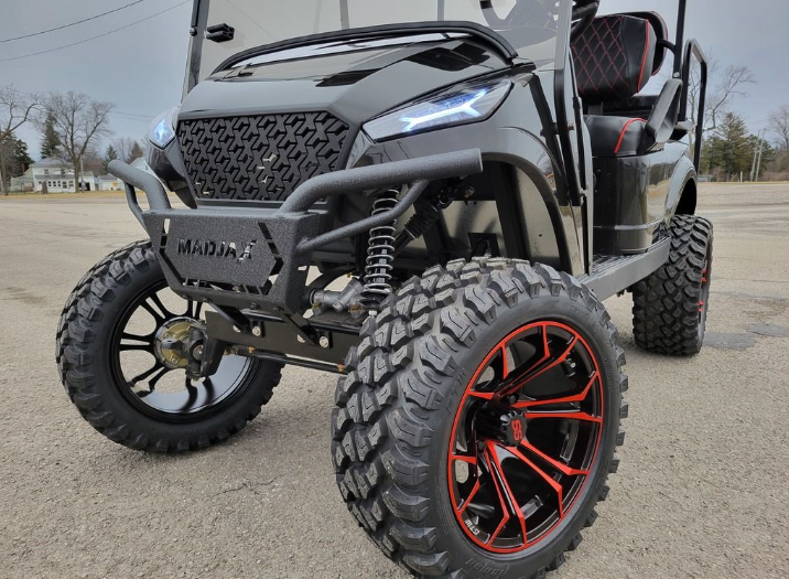 The 2022 Navitas Storm | 4L | Lithium Ion is engineered for power, efficiency, and unmatched performance. Featuring a state-of-the-art Lithium-Ion battery, this golf cart offers extended range, faster charging, and lower maintenance compared to traditional lead-acid batteries. The Navitas AC drive system delivers smooth acceleration and impressive torque, making it perfect for both leisure rides and rugged terrains. Designed with a sleek, modern look, comfortable seating for four passengers, and high-quality suspension, the Navitas Storm 4L ensures a smooth and enjoyable ride. Whether you’re cruising the golf course or exploring the outdoors, this cart is built for reliability and style.