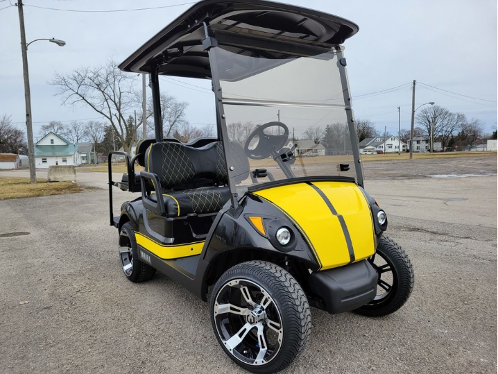 Buy 2017 Yamaha Drive2 EFI Quietech Used Gas Golf Cart — Fully Restored — Black Yellow Muscle — Export & Nationwide Delivery Available