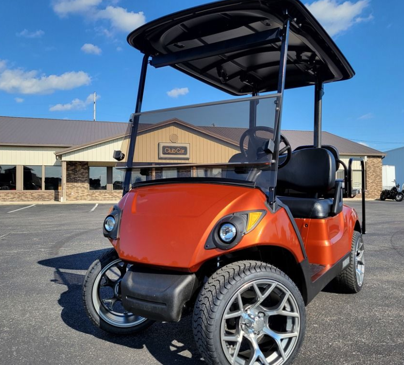 The 2017 Yamaha Drive2 Burnt Orange Lifted Gas Golf Cart is fully restored to factory standards, with upgraded suspension, off-road tires, custom luxury seating, LED lighting, and a stunning metallic finish. Built for long-term durability, fleet operation, private owners, or export fleet dealers.